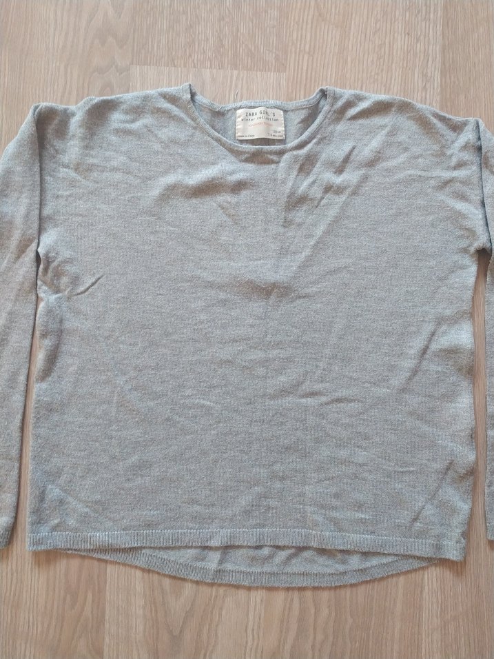 çocuklar için yuvarlak yaka ve uzun kollu, keten kumaştan rahat kesim gri kazak. Düz deseni ve sade tasarımıyla günlük kullanıma uygundur.