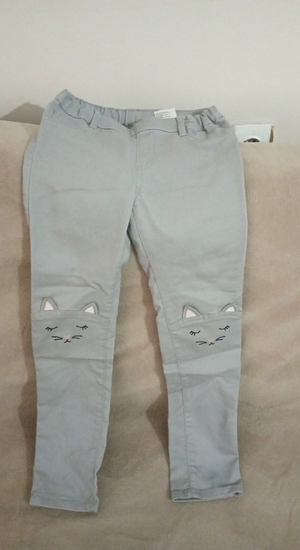 Gri kot pantolon, regular fit, nakış detaylı ve düğmeli. Kızlar için trend sokak stili rahatlığı sunar.