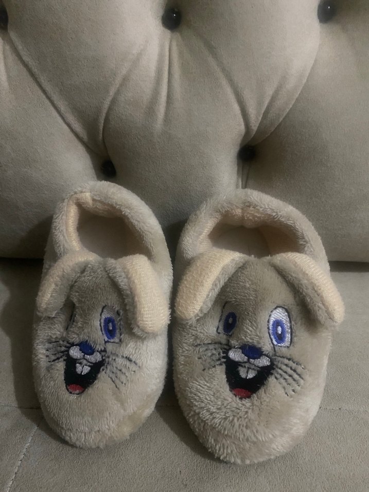 Gri Kız Peluş Ev Terliği Nakışlı