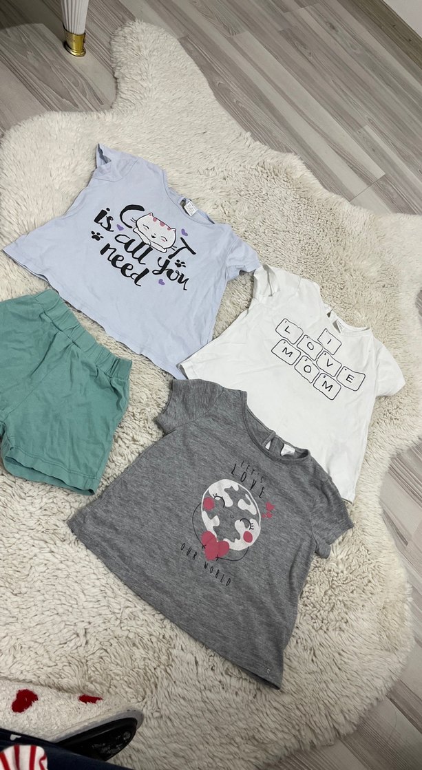 4 lü fiyattır Gri Kız Tişörtü, Kısa Kollu, Baskılı