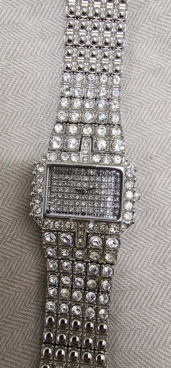 Gri metal bağlantılı kayış ve tokalı klipse sahip klasik kadın kol saati. Paslanmaz çelik arka yüzü dayanıklılık sağlar. ⌚