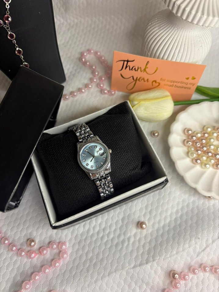 Gri kadranlı ve gümüş renkli bağlı tasarıma sahip kadın kol saati, modern klasik stili zarif detaylarla buluşturuyor. ⌚