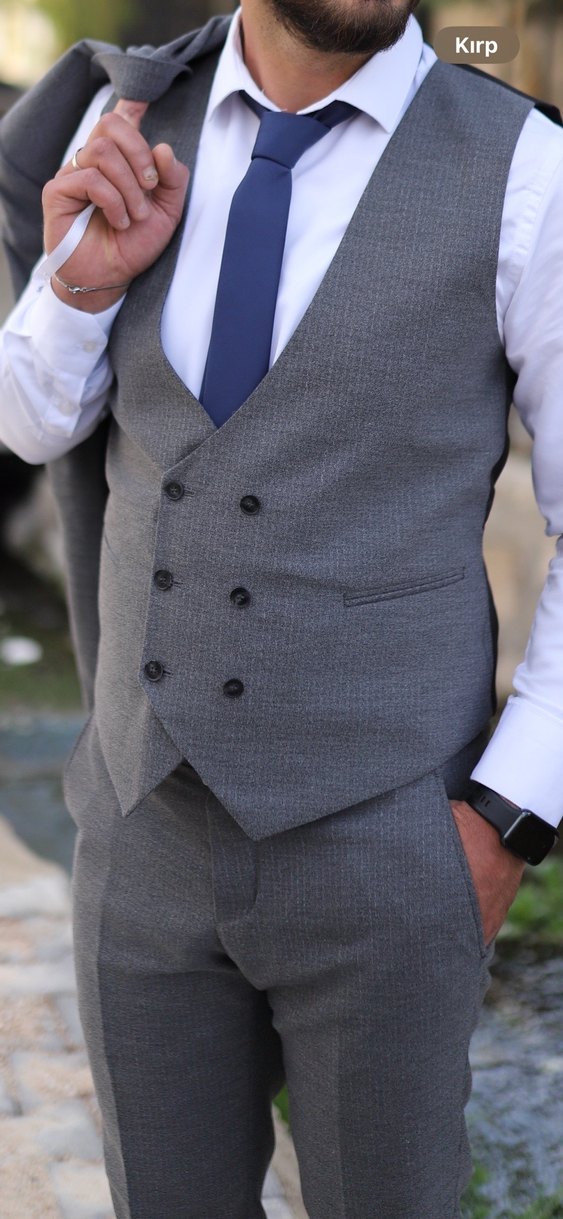 Gri Klasik Kesim Düğmeli Erkek Yelek