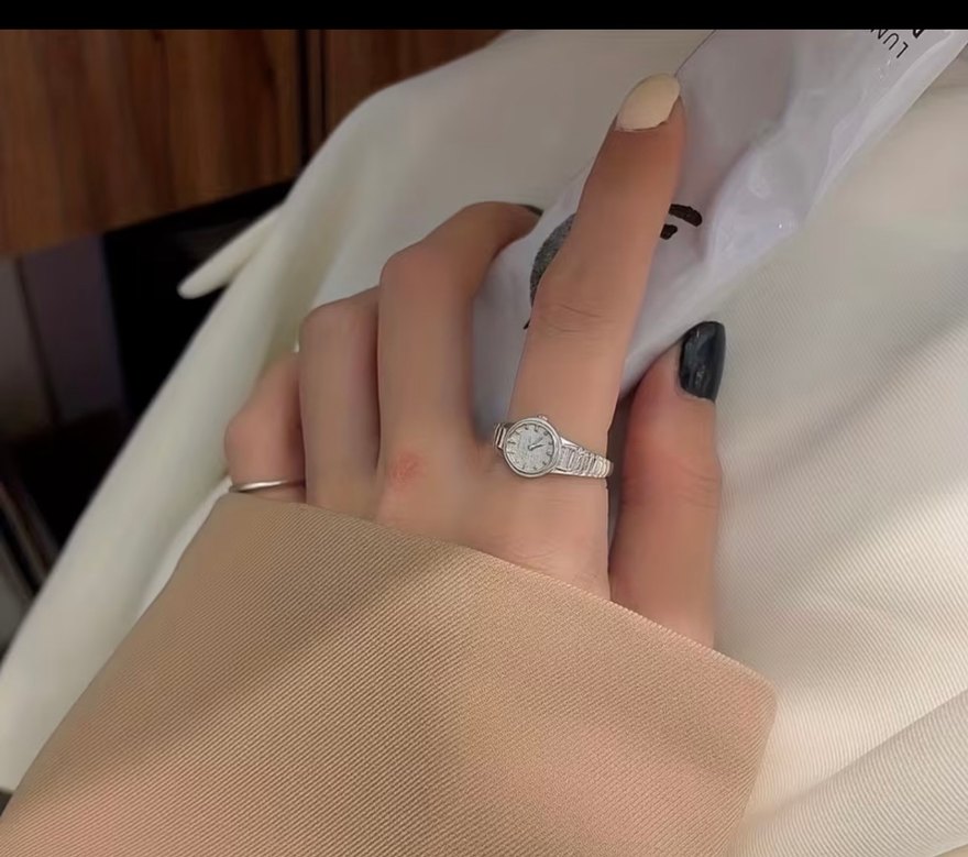Gri tonlarda, tokalı detaylı minimalist kadın yüzüğü, günlük kullanım için çağdaş ve klasik zarafet sunar.