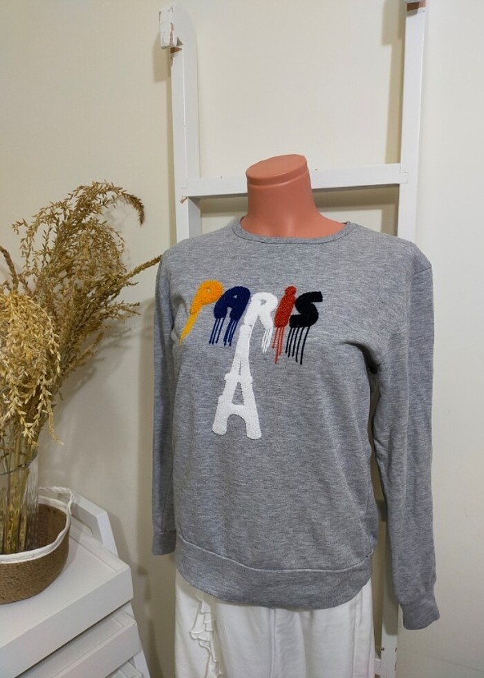 Gri uzun kollu sweatshirt sayılı kullanıldı deformesi yoktur aynı gün kargo
