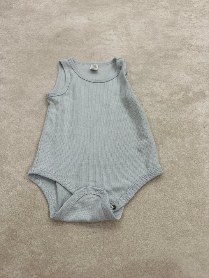 Pamuklu yumuşak kumaştan, kolsuz, gri renkli, yuvarlak yakalı bebek body, sade ve rahat tasarım Boy 42 cm (6.ç) #bebek #giyim #kıyafet