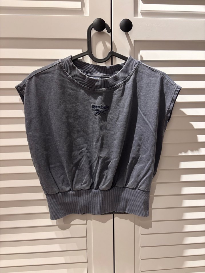 Gri renkte, kolsuz, bisiklet yaka ve rahat kesime sahip keten crop top. Desensiz sade tasarımıyla sportif ve günlük kombinlere uygun. ♀️