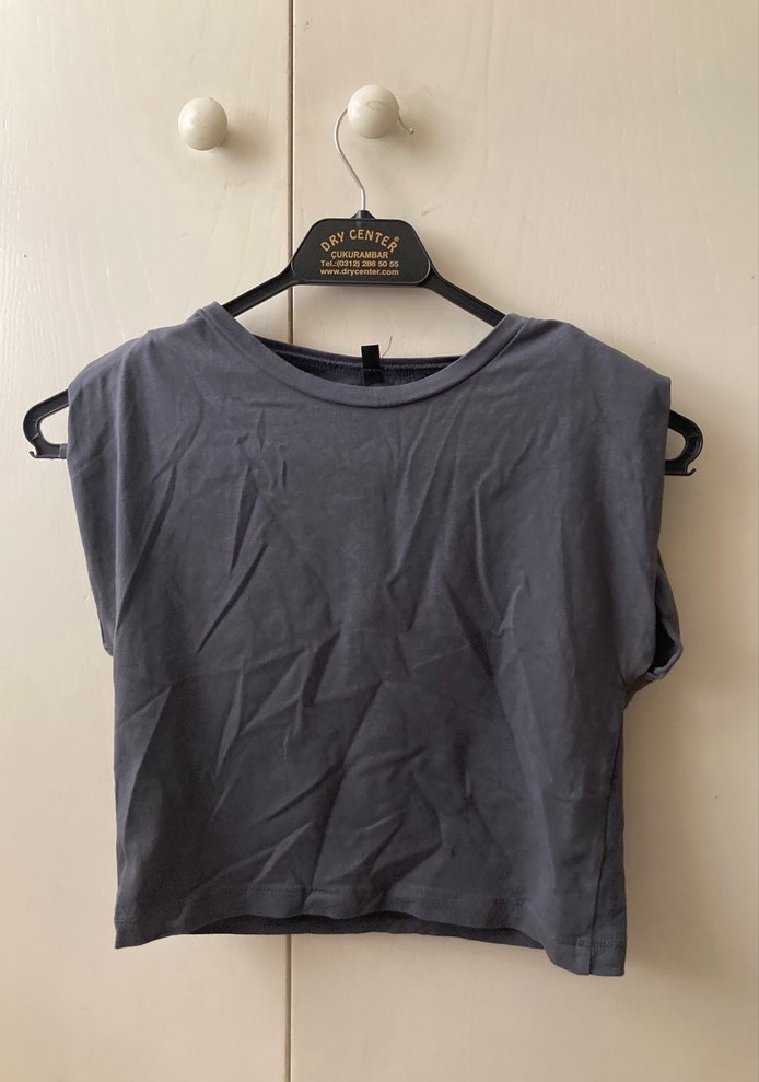 Gri renkte, pamuklu kumaştan, vatkalı kolsuz ve yuvarlak yakalı kadın tişörtü. Rahat ve salaş kesimiyle günlük kullanıma uygundur.