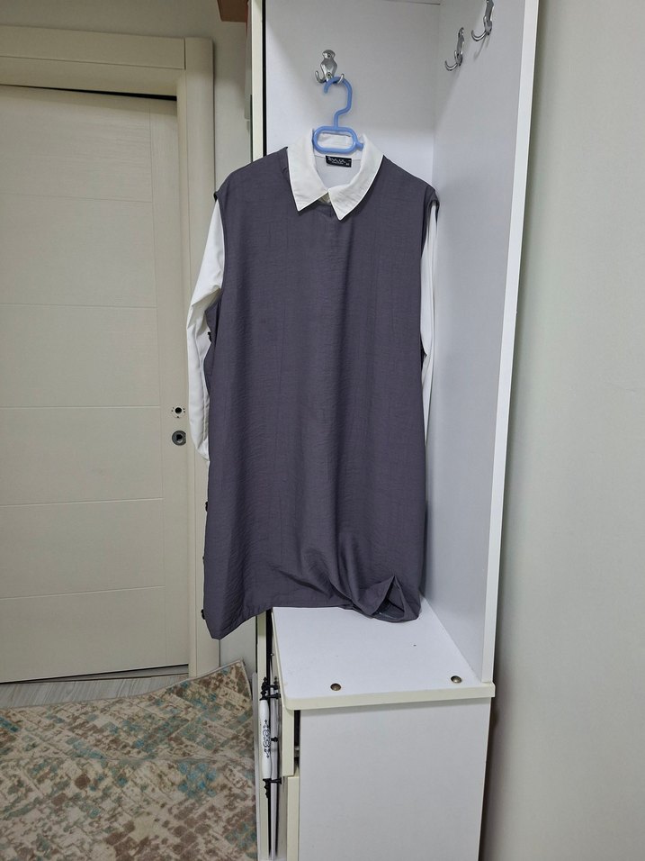 Gri kolsuz tunik, yakalı ve drapeli tasarıma sahiptir. Normal kesim ve yumuşak sentetik kumaştan, günlük kullanıma uygundur. sadece tuniğin fiyatıdır kendi dikimimdir gömlek dahil değildir