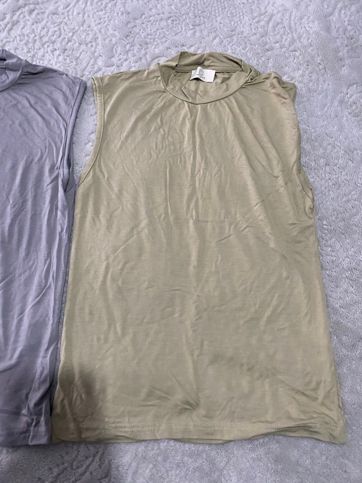 Gri renkte, yüksek yakalı ve kolsuz, rahat kesim kadın atlet. Geri iade alimi yapmiyorum bilerek alim yapiniz 2 li fiyattir hic kullanilmadi
