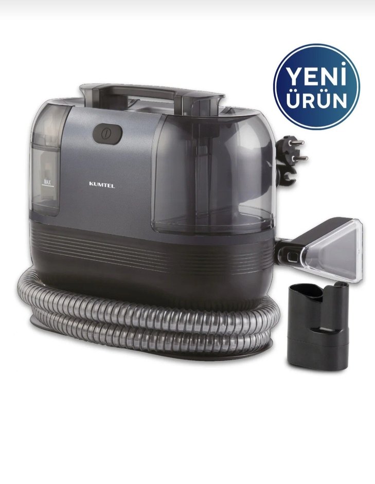 Kumtel gri elektrikli süpürge, aksesuarlar ve esnek hortum ile kompakt tasarıma sahiptir. Yeni ürün, kullanımı pratiktir.
