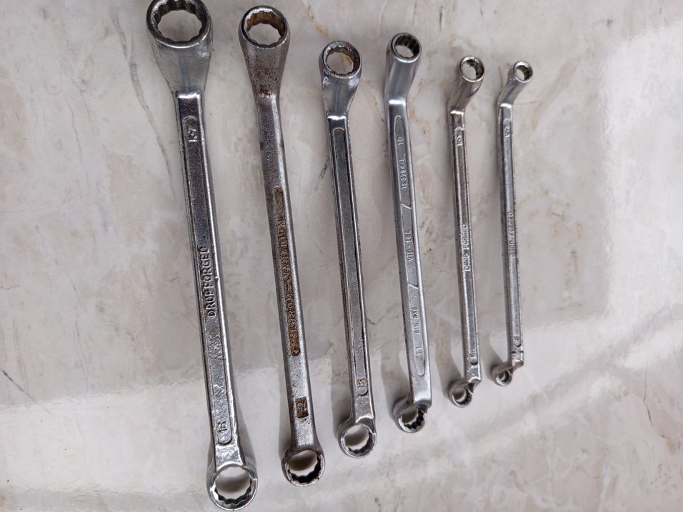 Farklı boylarda, dayanıklı metalden yapılmış gri kombine anahtar seti, çeşitli mekanik işler için uygundur .