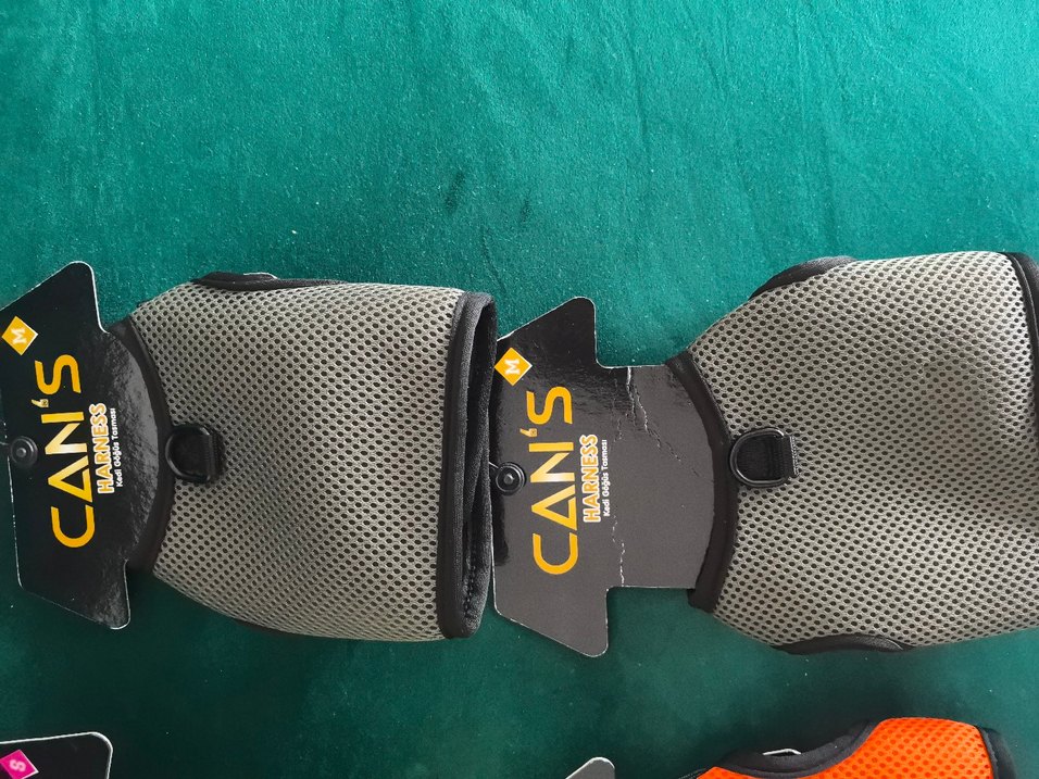 Nefes alabilir file kumaştan gri köpek göğüs tasması, ayarlanabilir kayışlar ve tasma takmak için D halkası içerir. Medium beden.