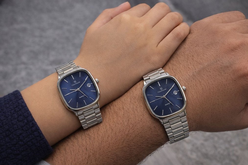 Lacivert kadran ve gri metal kordonu ile klasik ve modern tarzı birleştiren erkek kol saati. Tarih göstergesi ve şık dikdörtgen kasa içerir. ⌚