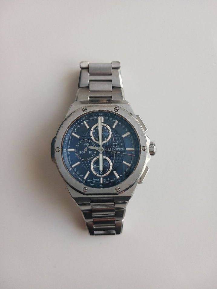 GREENWICH marka gri renk kol saati. Ürünün camında çizik yoktur. Sadece kullanıma bağlı açma kapama yerine hafif çizik mevcuttur. onun haricinde tertemiz ve sıkıntısız.