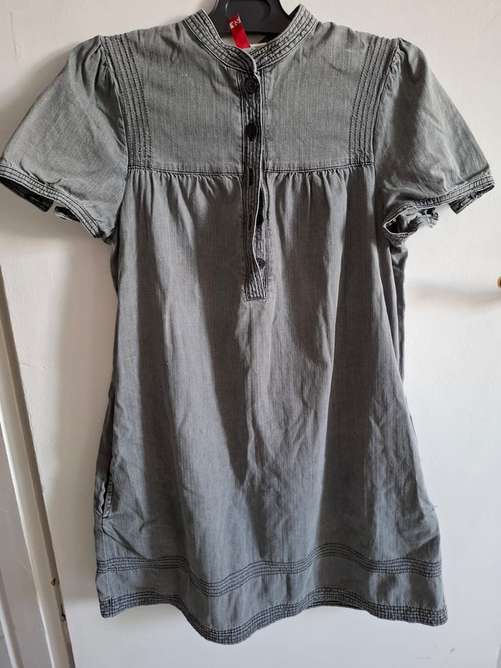 Gri,cepli,kot elbise midi boy diz hizasinda bitiyor 70 kiloya kaar rahatlikla giyilir
