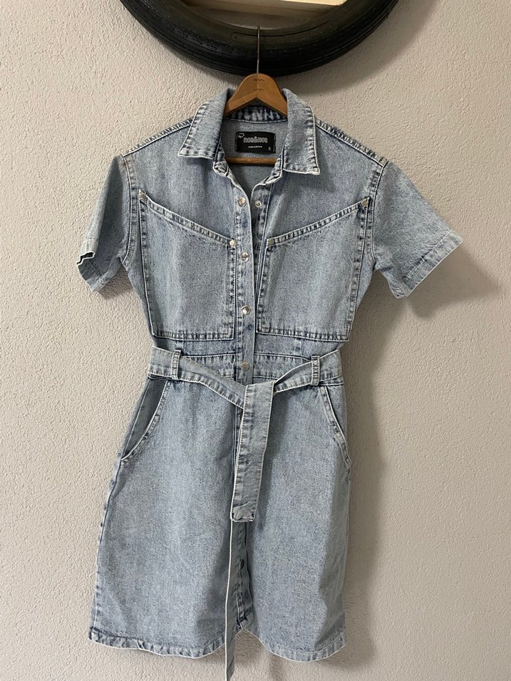 Gri kot kumaştan yapılmış, yakalı ve kısa kollu kısa tulum. Belde kemer ile oturan kesime sahip, günlük rahat kullanıma uygun.