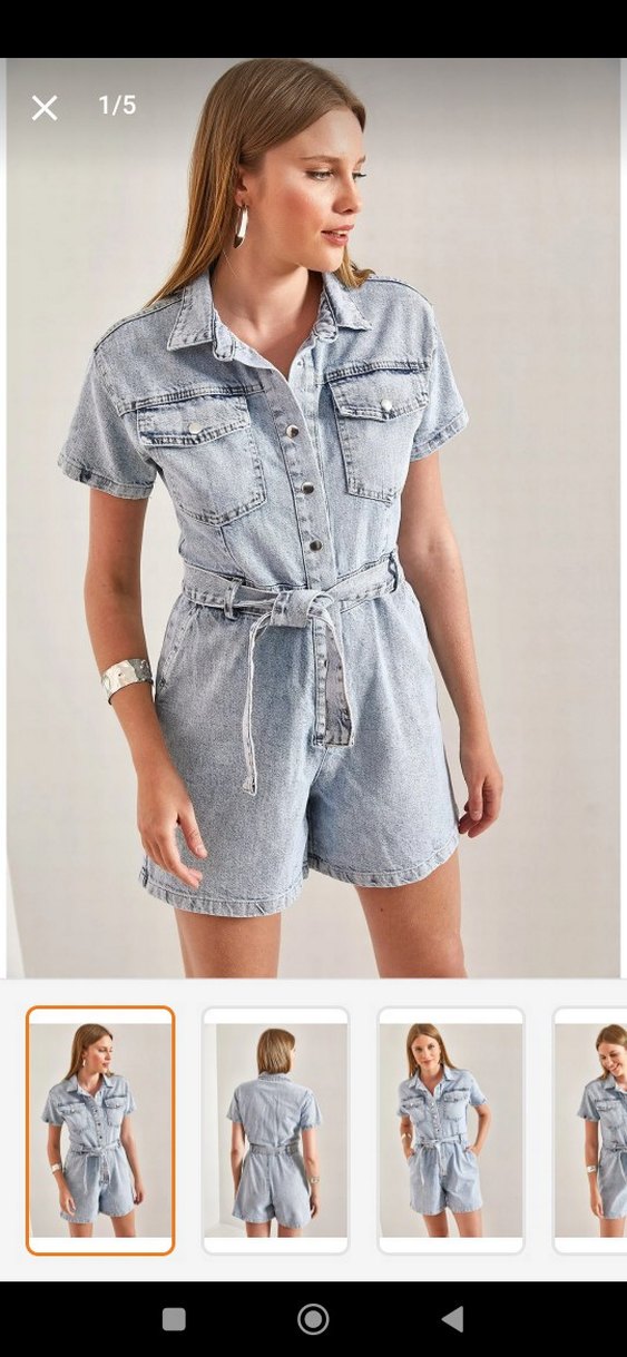 Gri kot kısa tulum, yakalı, kısa kollu ve kemerli salaş kesimle sokak stiline uygun casual bir tasarım. Trendyoldan aldım