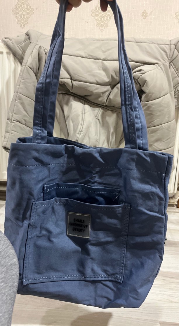 Gri kot kumaştan fermuarlı kadın çantasıdır. Ön cepli ve uzun saplı olup, sokak stili ve günlük kullanım için uygundur.