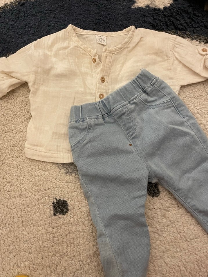 Gri Kot Pantolon ve Beyaz Uzun Kollu Erkek Bebek Takımı