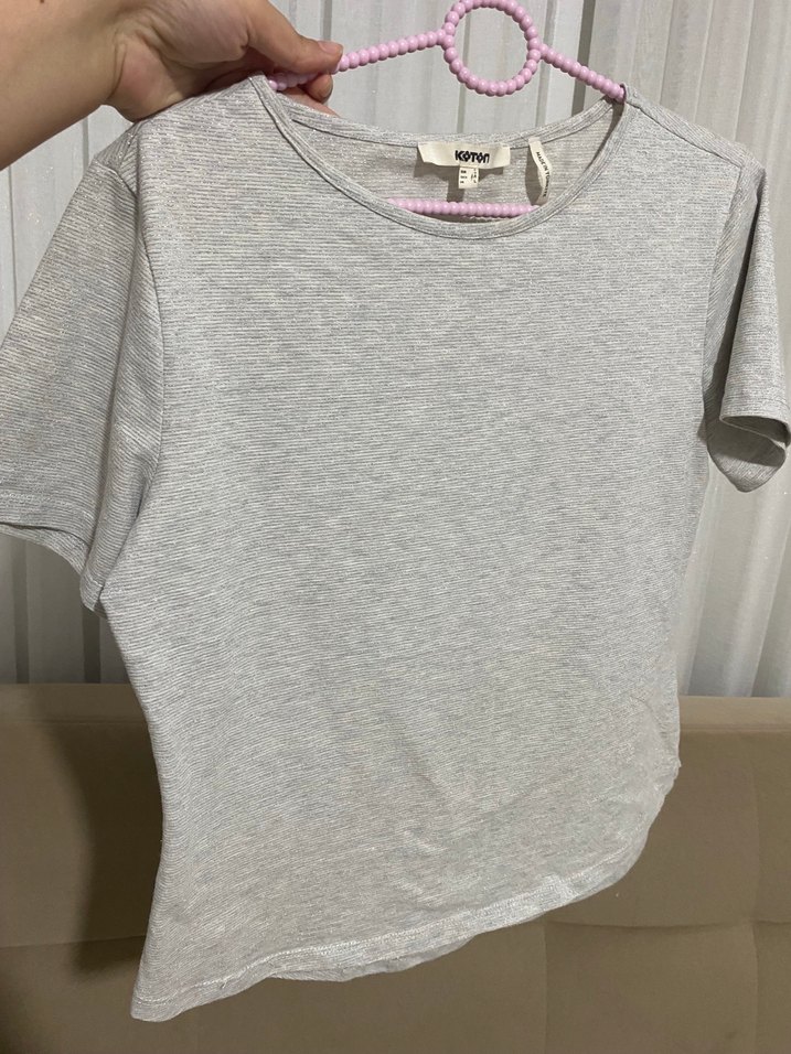 Pamuklu, gri renkte, kısa kollu ve yuvarlak yakalı kadın T-shirtü. Salaş kesimiyle günlük rahat ve şık bir görünüm sağlar. Sokak modasına uygun sade tasarım.
