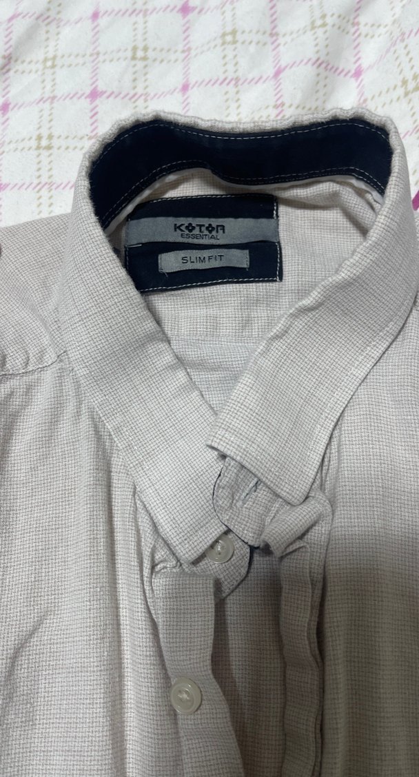 Gri uzun kollu erkek gömlek, pamuklu kumaştan, düğmeli ve yakalıdır. Rahat kesimi ve baskılı deseni ile günlük ve iş stiline uygundur. Marka: Koton.