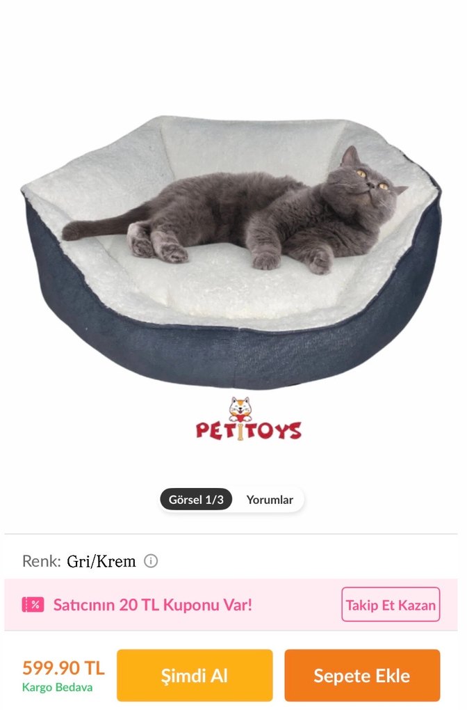 Gri renkte, yumuşak ve sıcak tutan kumaştan yapılmış yuvarlak yatak. Rahat ve konforlu dinlenme alanı sunar. ️