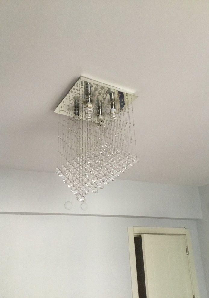 Gri tavan lambası, asılı kristal boncuklarla süslenmiş, dekoratif ve şık aydınlatma sağlar.