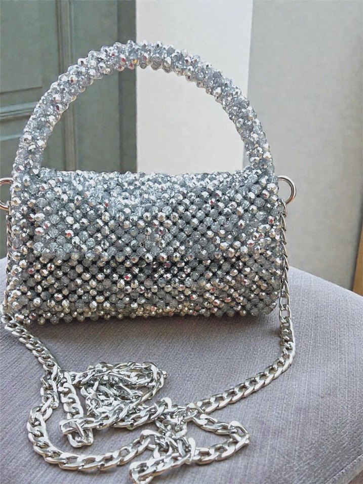 Gri boncuk işlemeli örgü kumaştan yapılmış, yılan desenli, çağdaş ve göz alıcı kadın çantasıdır. Zincir askısıyla kullanımı çeşitlidir. El yapımı ürünlerdir. Bakımı kolaydır. Özel gece kombinlerinizin hepsine uyum sağlayacaktır.✨