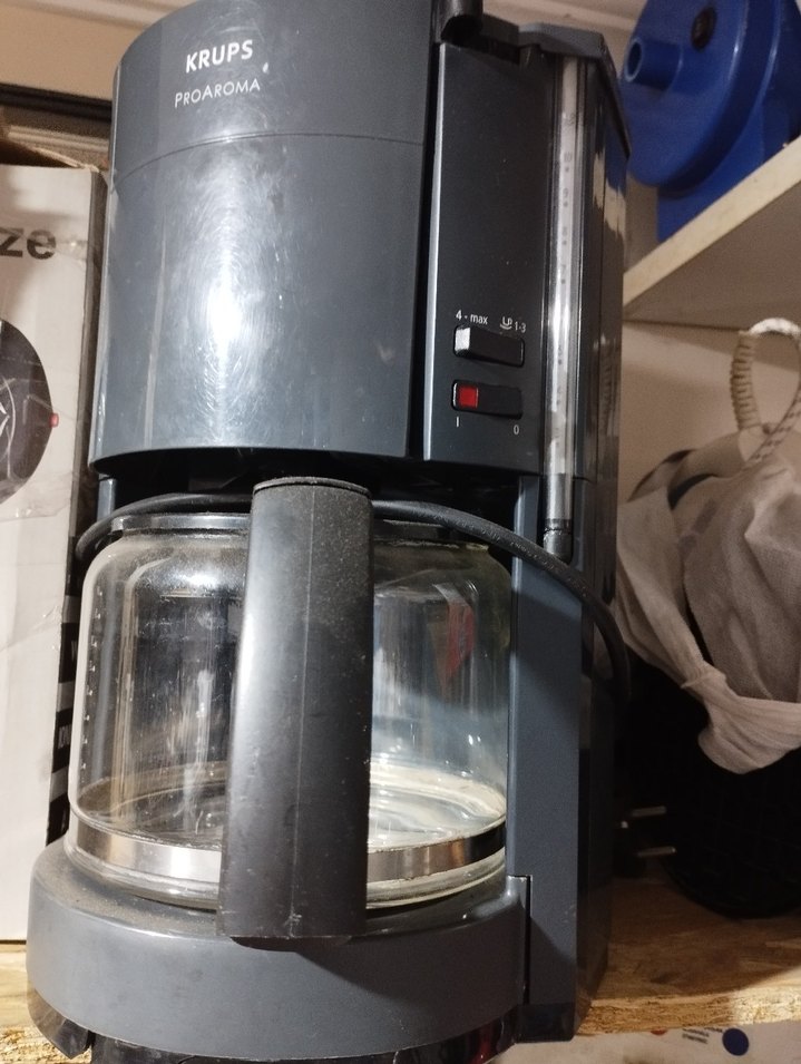 Gri renkte KRUPS ProAroma kahve makinesi, cam sürahisi ve kullanımı kolay düğmeleriyle kahve yapmayı sağlar. Su seviyesi göstergesi ve sağlam tutma sapı bulunur. ☕