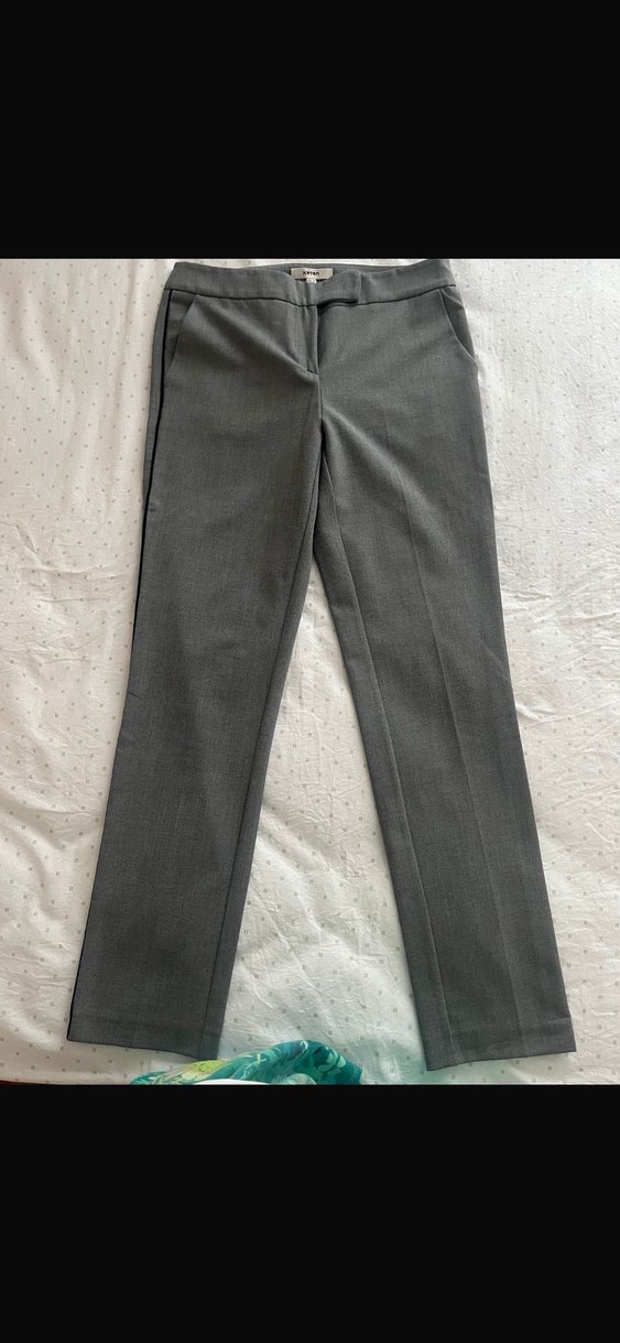 Gri kumaştan ve normal boyda olan bu kadın pantolonu, düz ve desen içermeyen tasarımıyla ofis kullanımı için uygundur.