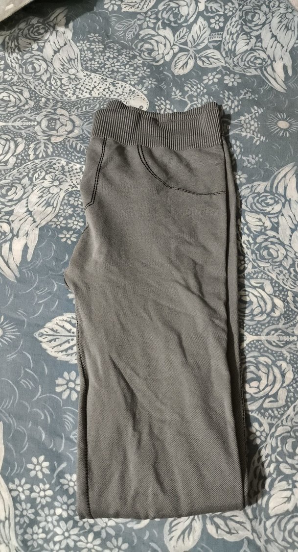Gri kumaştan, normal boyda ve dar kesimli kadın taytn. Fermuarlı detaylar ve rahat tasarımıyla günlük kullanıma uygundur. dar kesim M bedenlere s bedenlere olur