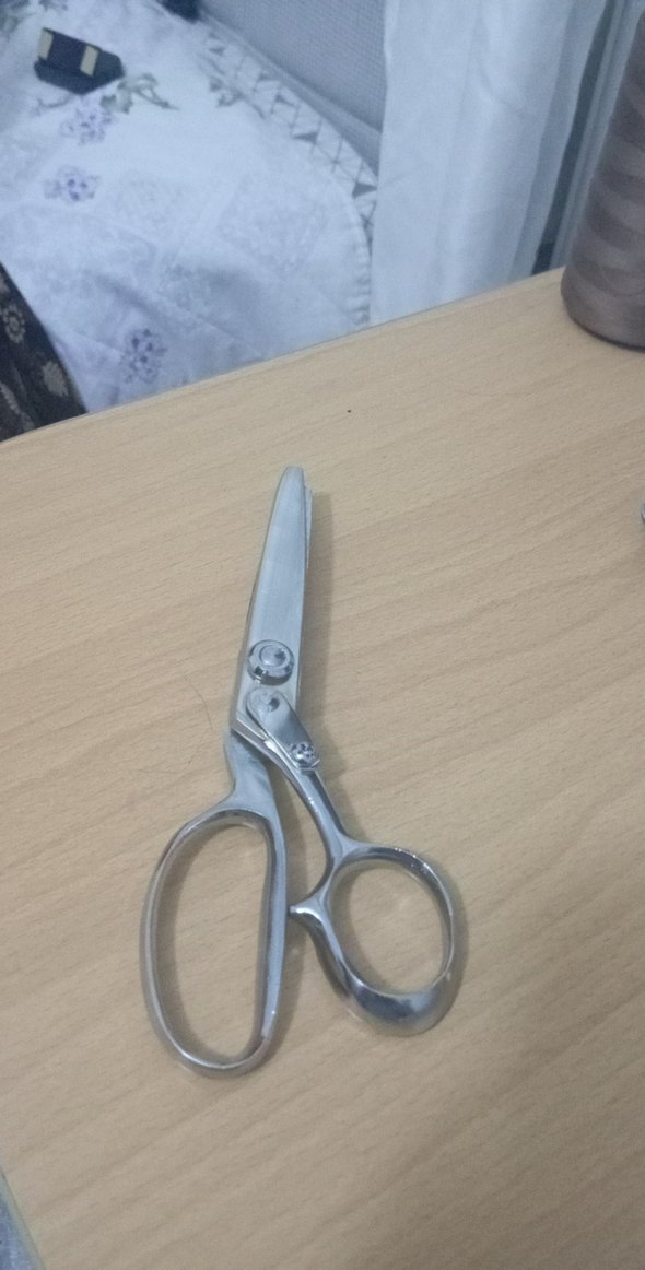 Keskin ve hassas bıçaklı, metalden yapılmış gri kumaş makası ✂️.