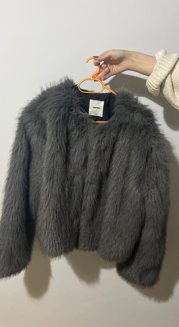 gri kürk bir kez bile giyilmedi sadece etiketini kaybettigim icin iade edemedim kendime yakistirmadigim icin satiyorum sıfır kombinlenince cok guzel gorunuyor