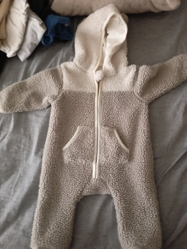 Yumuşak ve sıcak gri renkli bebek erkek tulumu, kürk detaylı ve kapüşonludur. Önü fermuarlı ve ceplidir. ❄️ 6 ay desede 1 yasa kadar oluyor