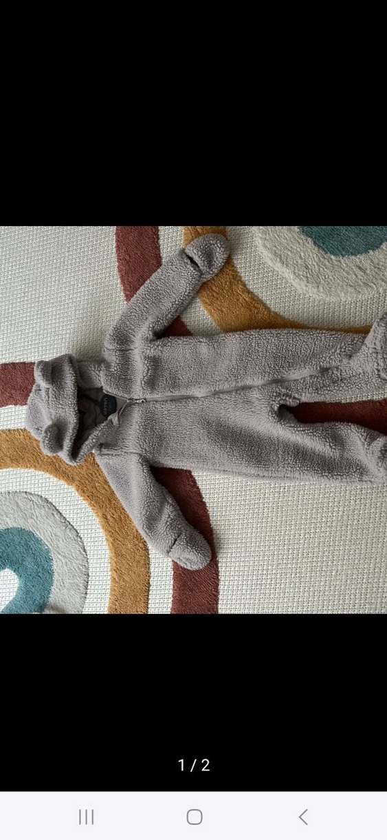9-12 ay uyumlu Gri renkte, yumuşak ve sıcak kumaştan yapılmış, kürk detaylı bebek tulumu. Kapüşonlu ve ayakları kapalı, sade sokak stili tasarım.