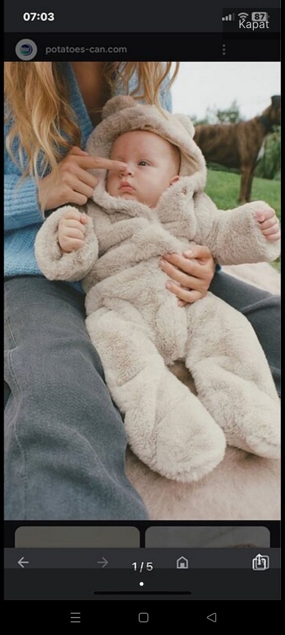 Gri renkte, kürklü detaylı yumuşak kumaştan yapılmış bebek tulumu. Desensiz sade tasarımı ile sıcak ve rahat tutar. ❄️
