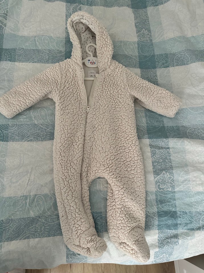 Zara Gri renk, kapüşonlu ve kürklü detaylı, tam fermuarlı yumuşak ve sıcak bebek tulumu. Soğuk havalar için rahat ve konforlu. ❄️kız erkek giyebilir