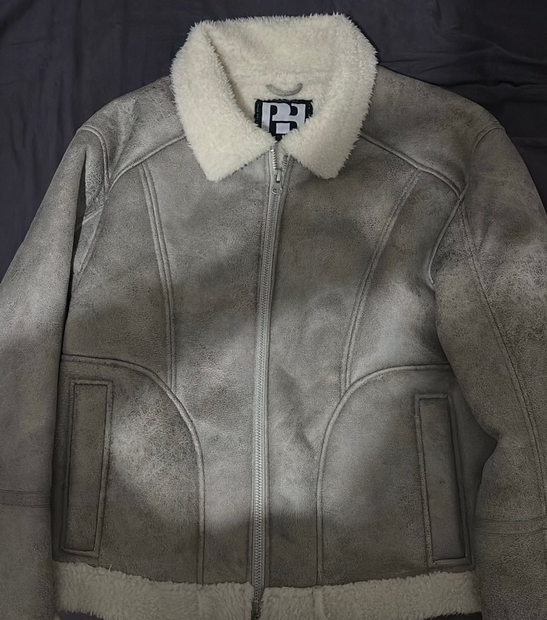 Bu dar kesim gri deri ceket, kürklü yakası ve uzun kollu tasarımıyla sokak stiline uygun, midi boyda günlük kullanıma uygundur. Defosu yok.