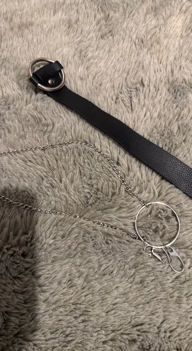 Gri deri ve kürk detaylı, metal zincir aksanlı kadın kemeri. Goth stilini sıcak dokunuşla birleştirir, moda tutkunları için ideal.