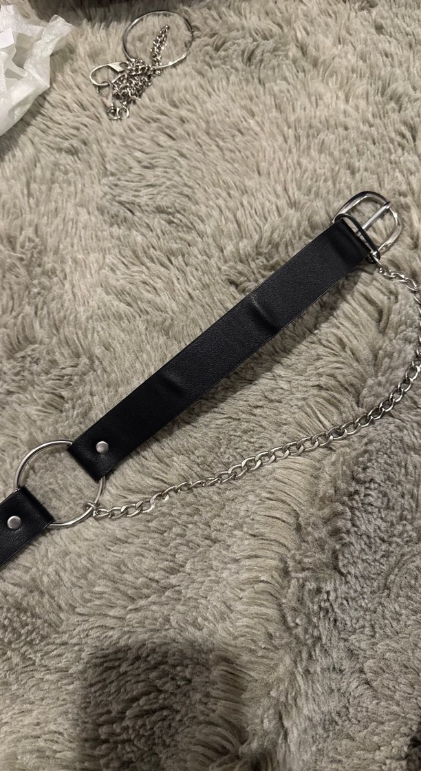 Gri deri kemer, kürk detayları ve metal zincir aksanlarıyla gotik ve grunge punk tarzını yansıtır. Bershka kemer+trendyol zincir kemer Hiç kullanmadım