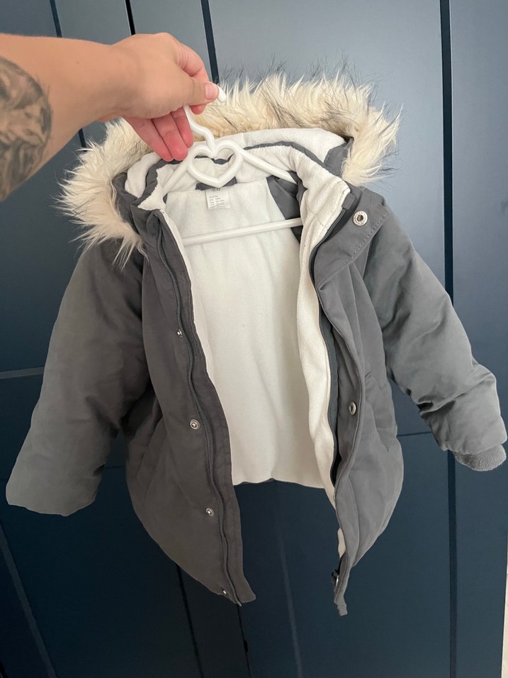 Fitted kesim gri erkek çocuk mont, kapüşonunda kürk detaylı ve notched lapel yaka ile dikkat çeker. Yumuşak ve sıcak kumaştan üretilmiştir. Sıfır ayarında ve tertemiz.