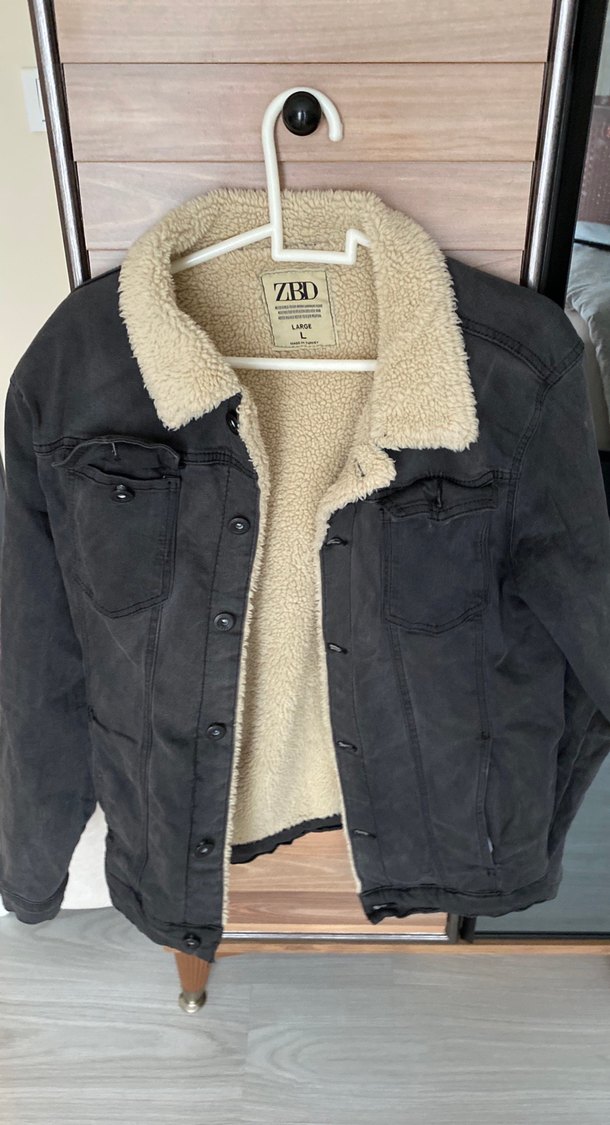 Bu erkek ceketi, uzun kollu ve kürk detaylı notched lapel yaka ile bol kesime sahiptir. Orta boyda, gri renkte ve rahat polar kumaştan yapılmıştır. Sokak tarzı için uygundur.