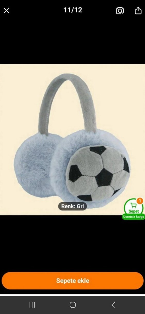 Gri renkli, futbol topu desenli ve yumuşak kürk detaylı kulaklık. Erkek çocuklar için sıcak tutar. ⚽