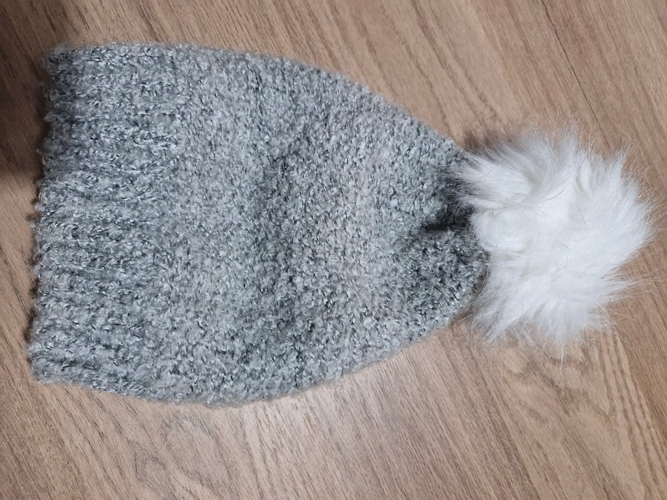 Yumuşak ve sıcak kumaştan yapılmış, gri renkte, üzerinde kürk detayı bulunan kadın bere, rahat ve modern bir tarza sahiptir.
