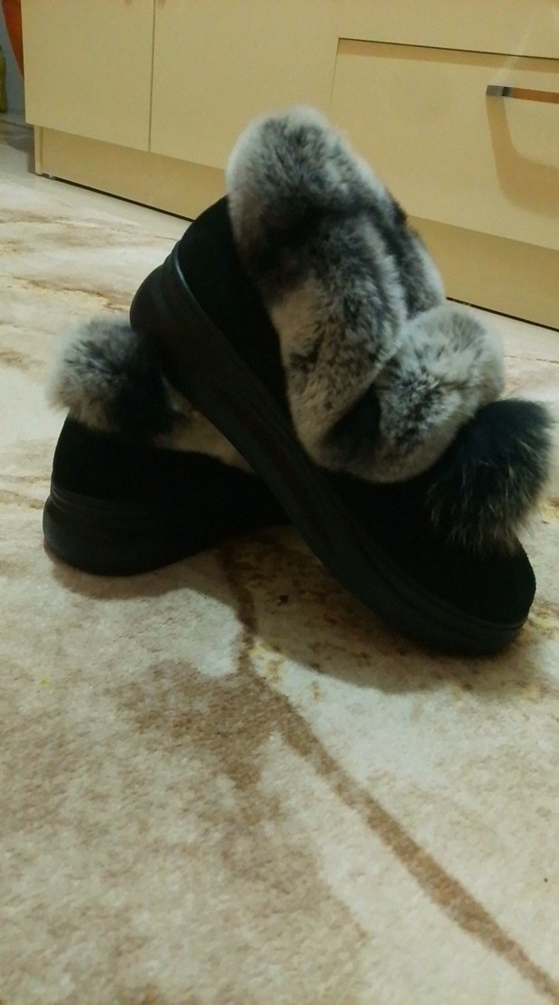 Gri renkte, dolgu topuklu ve kürk detaylı kadın botları. Kauçuk malzemeden yapılmış, rahat ve gündelik kullanıma uygun.