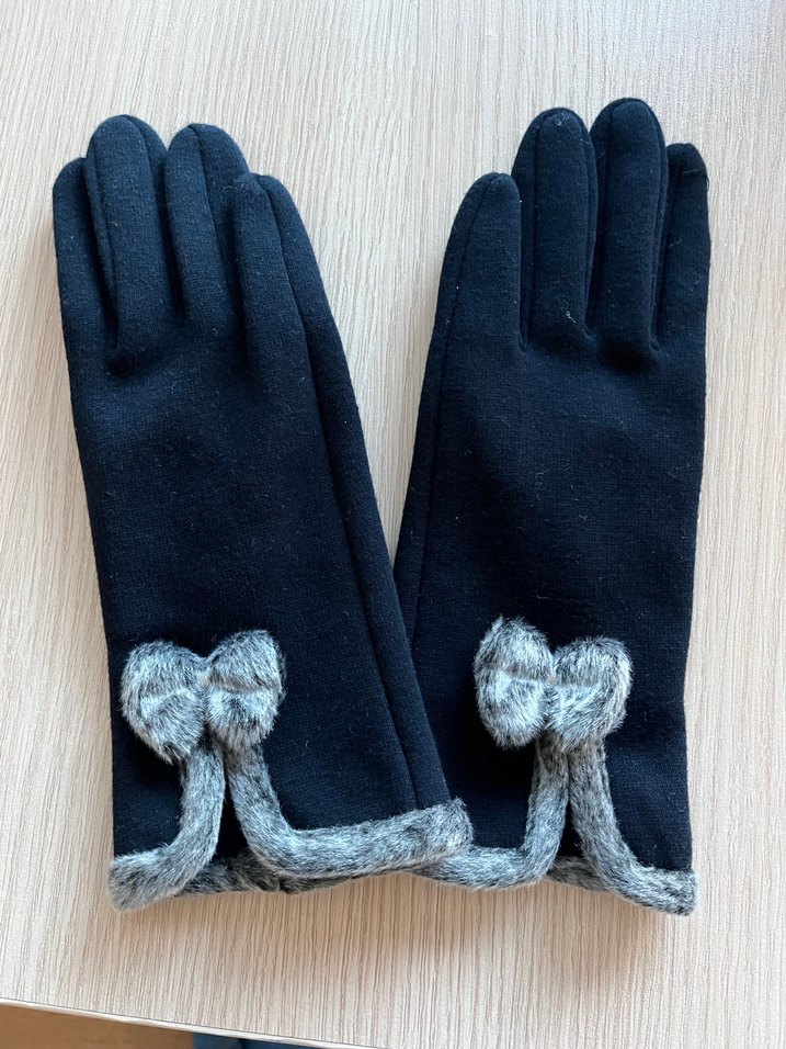 Kadın eldivenleri, rahat ve sıcak kumaş ile gri kürk detaylarına sahip, konforlu ve gotik tarzda.