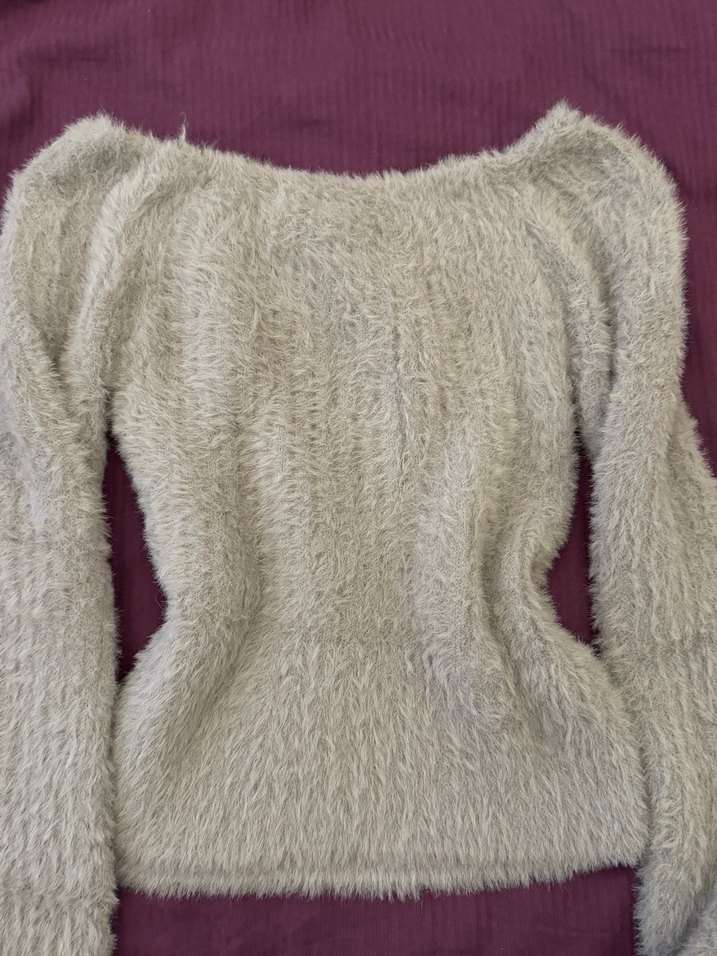 1 kere giyildi. Gri renkte, uzun kollu ve yuvarlak yaka, kürklü detaylı kadın triko kazak. Yumuşak sentetik kumaştan, bohem ve retro tarzda, günlük kullanım için uygundur.