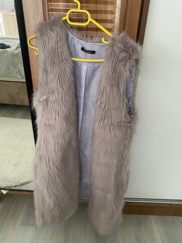 Lilamsı renkte, sentetik kürk detaylı, straplez ve midi boyda kadın yelek. İnce kesimi ve kolsuz tasarımıyla günlük kullanıma uygun rahat bir modeldir.