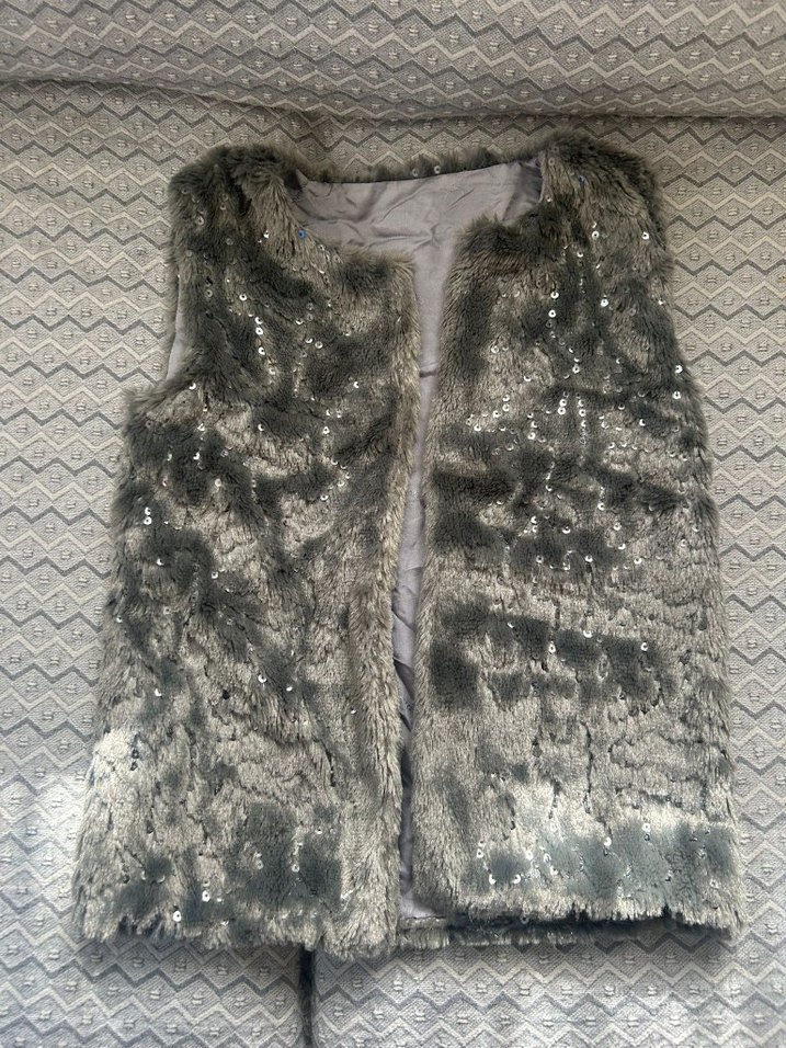 Gri Kürklü Kolsuz Midi Yelek